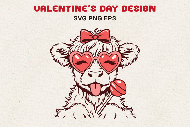 Similar Design Products to Highland Cow with Heart Glasses Valentine Line Art SVG