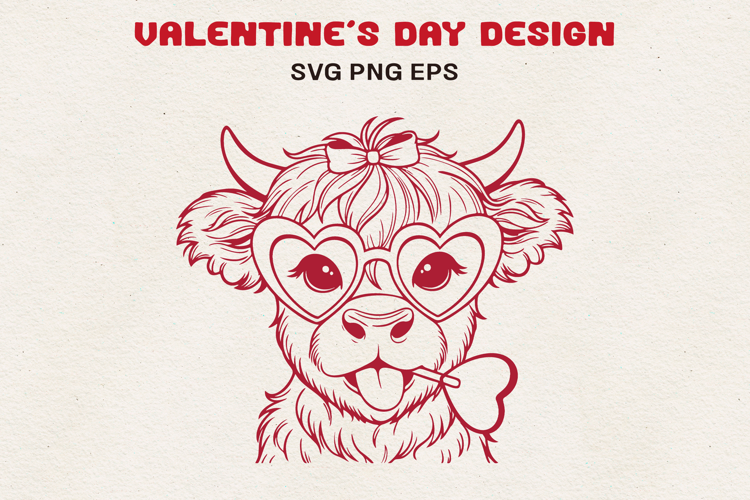 Similar Design Products to Highland Cow with Heart Glasses Valentine Line Art SVG