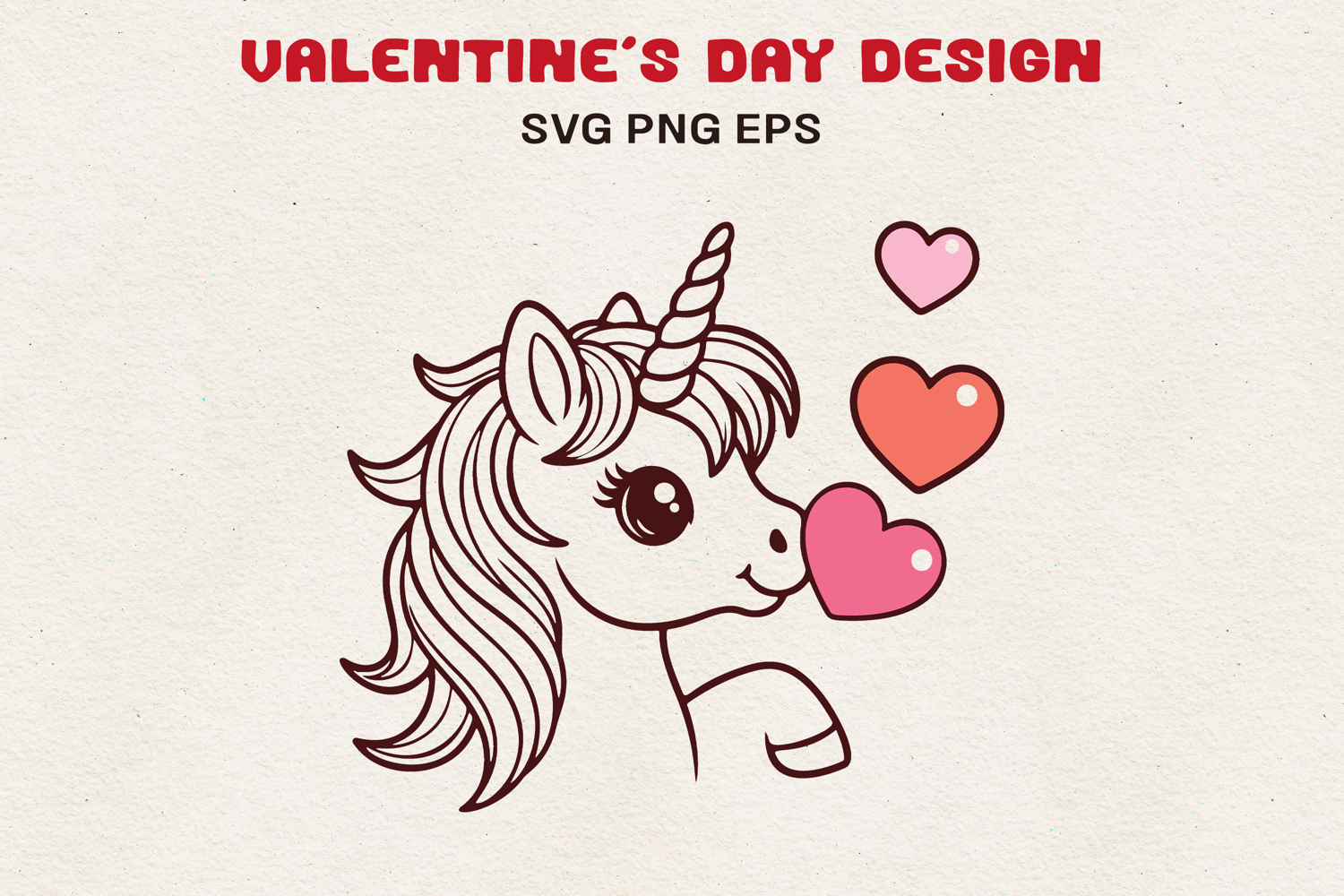 Adorable Valentine unicorn illustration blowing a heart-shaped kiss. Clean hand-drawn line art with a sweet and playful mood. Perfect for Valentine’s Day crafts, kids apparel, stickers, cards, sublimation, and DIY gifts.