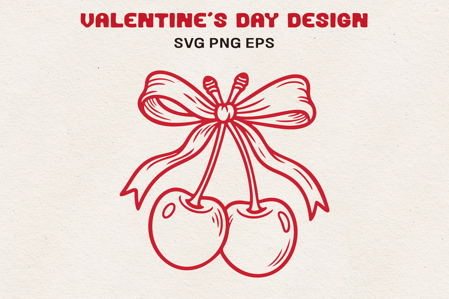 Cherry Bow Valentine SVG | Cute Bow With Cherries | Romantic Retro Design SVG PNG EPS