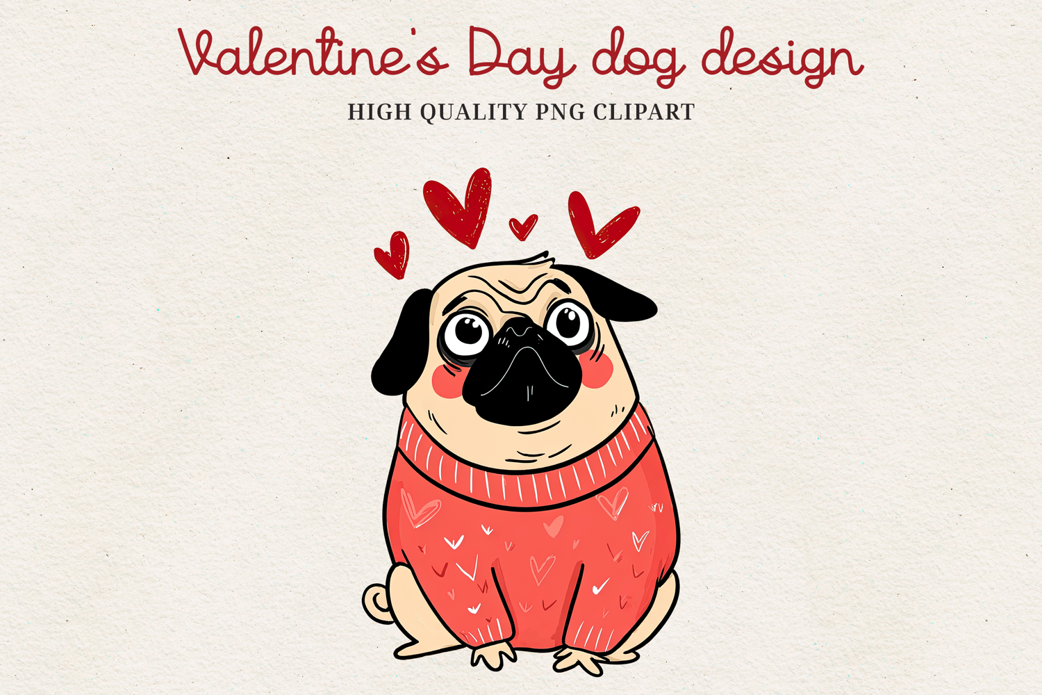 A sweet and charming Valentine’s Day dog illustration featuring an adorable puppy in a cozy red sweater, decorated with a cute bow and surrounded by hearts. This romantic dog clipart is designed in a warm hand-drawn style, making it perfect for Valentine’s crafts, gifts, and love-themed projects.