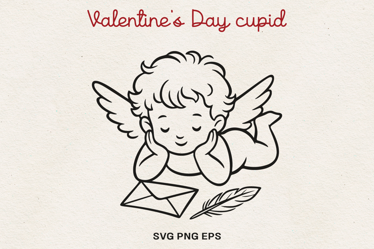 Valentine’s Day Cupid Illustration | Cute Love Angel Line Art SVG PNG EPS