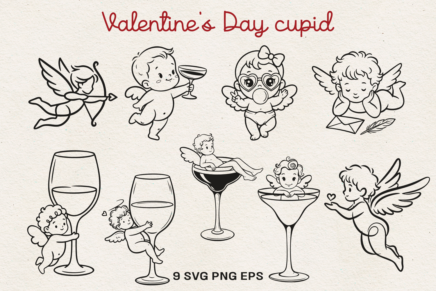 Valentine’s Day Cupid Illustration | Cute Love Angel Line Art SVG PNG EPS