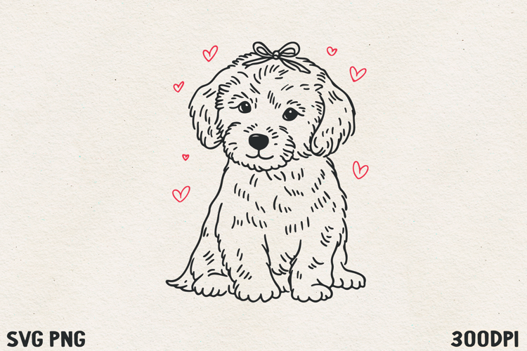 Cute Puppy with Bow SVG PNG | Sweet Valentine Dog Illustration
