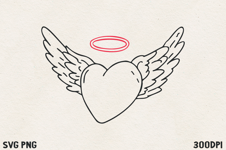 Angel Heart with Wings SVG PNG | Romantic Valentine Love Illustration