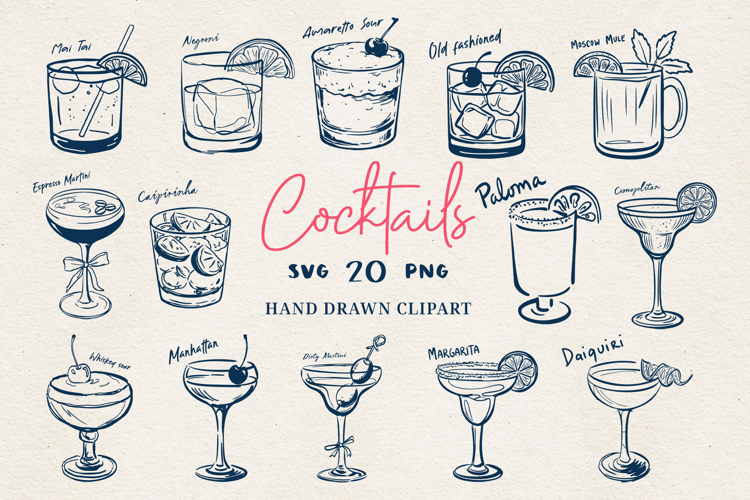 Similar Design Products to Hand Drawn Cocktail BUNDLE Line Art SVG | Vintage Drink PNG