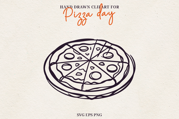 Hand Drawn Pizza Clipart – Pizza Illustration SVG PNG EPS, Cute Food Line Art, Italian Food Design, Pizza Day Graphic