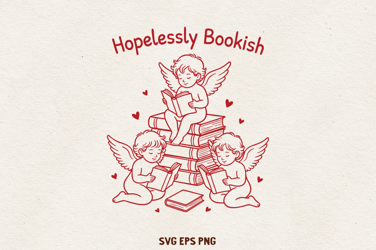 Hopelessly Bookish SVG | Cute Reading Angels Design | Book Lover Valentine SVG PNG EPS