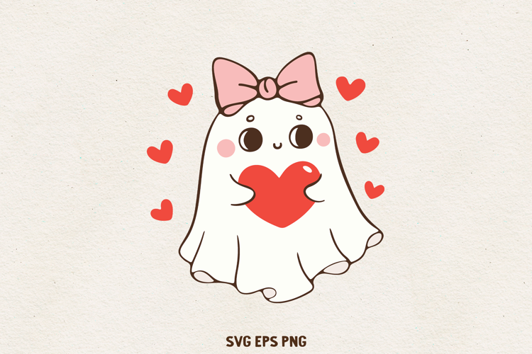 Cute Ghost Illustration | Kawaii Love Spirit Clipart | Valentine Ghost SVG PNG EPS