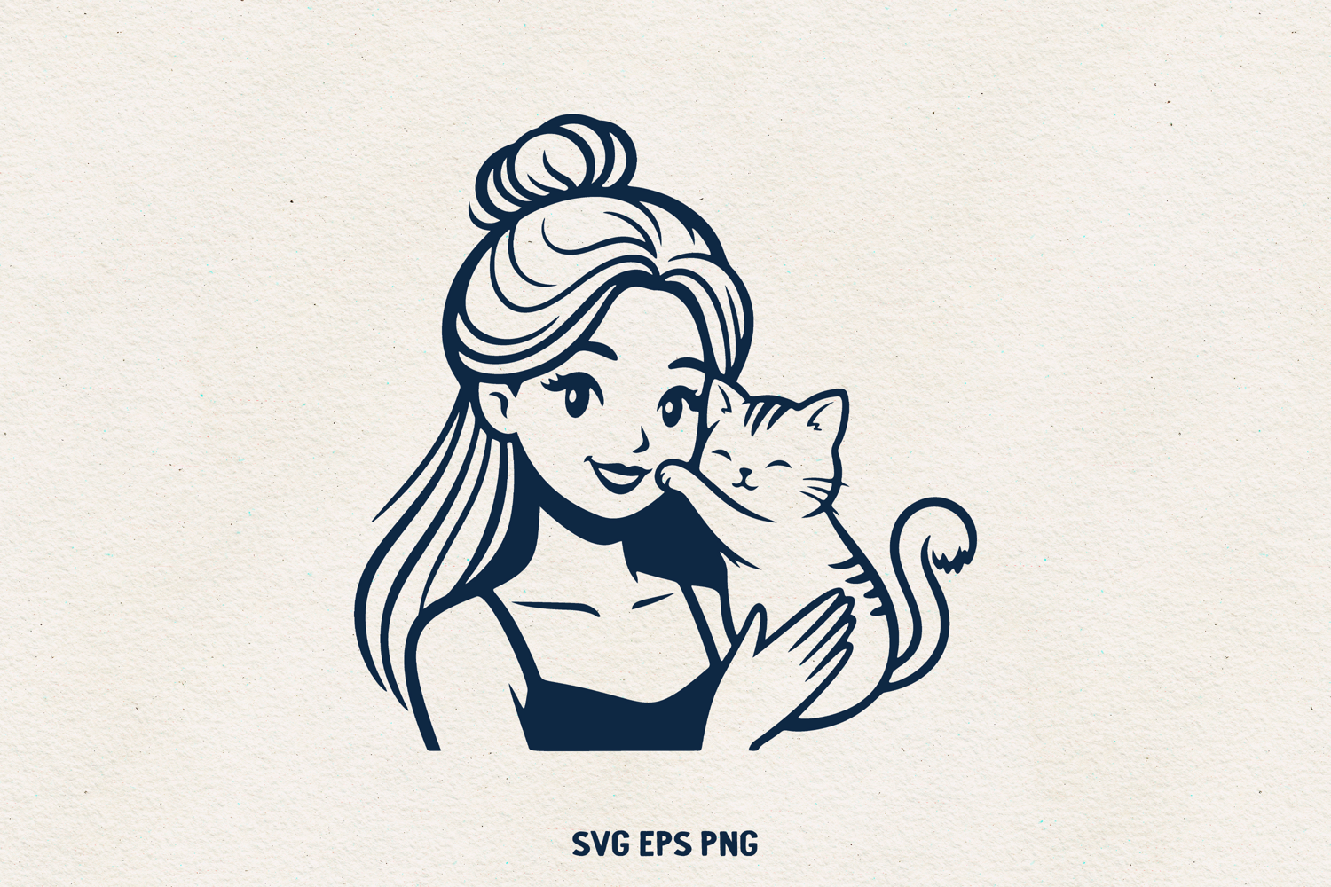 Cat Illustration Kitten Clipart Cat Png Cat Lover Svg Cat Mom Svg Cute Girl Svg Cat Line Art Girl With Cat Pet Lover Design Girl Hugging Cat