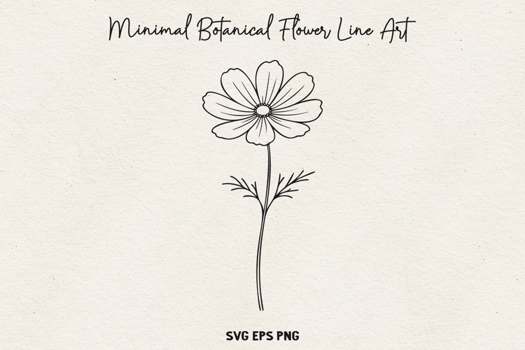 Minimal Botanical Flower SVG, Thin Line Floral Outline, Modern Wildflower Clipart, Floral Vector EPS PNG, Cricut Cut File