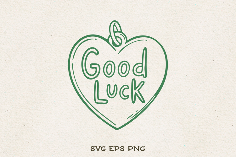 Hand-drawn Good Luck heart illustration in a minimal outline style. Perfect for St. Patrick’s Day cards, stickers, shirts, party decor, and sublimation prints.