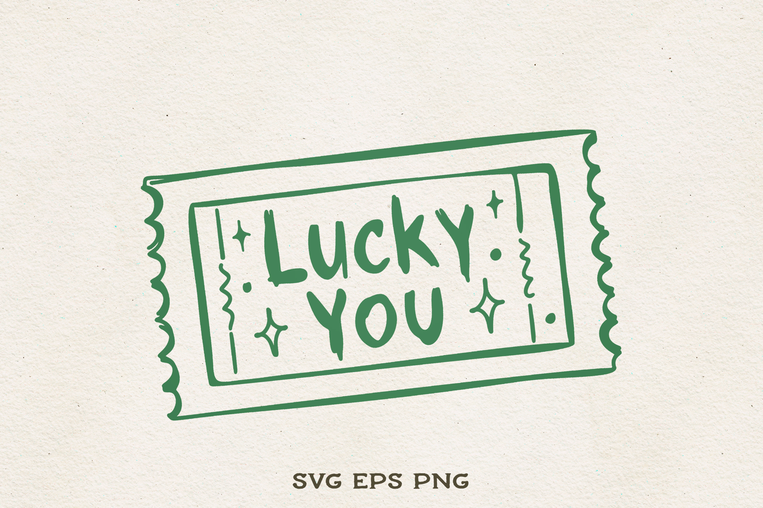 Hand-drawn lucky ticket illustration in a clean outline style. Perfect for party invitations, carnival themes, casino events, stickers, and sublimation projects.