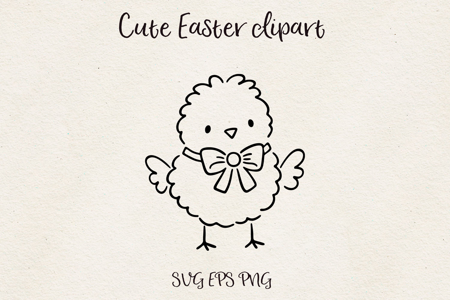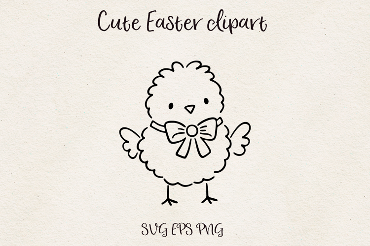 Adorable baby chick clipart illustration wearing a bow. Minimal cute line art style perfect for Easter crafts, greeting cards, stickers, nursery decor, and kids projects.