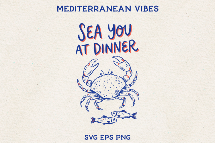 Similar Design Products to Sea You at Dinner Crab SVG | Mediterranean Seafood PNG