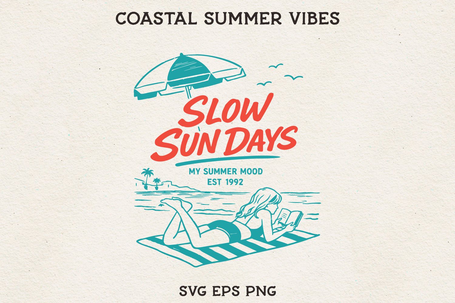 Slow Sun Days SVG – Beach Girl Reading Summer Vacation
