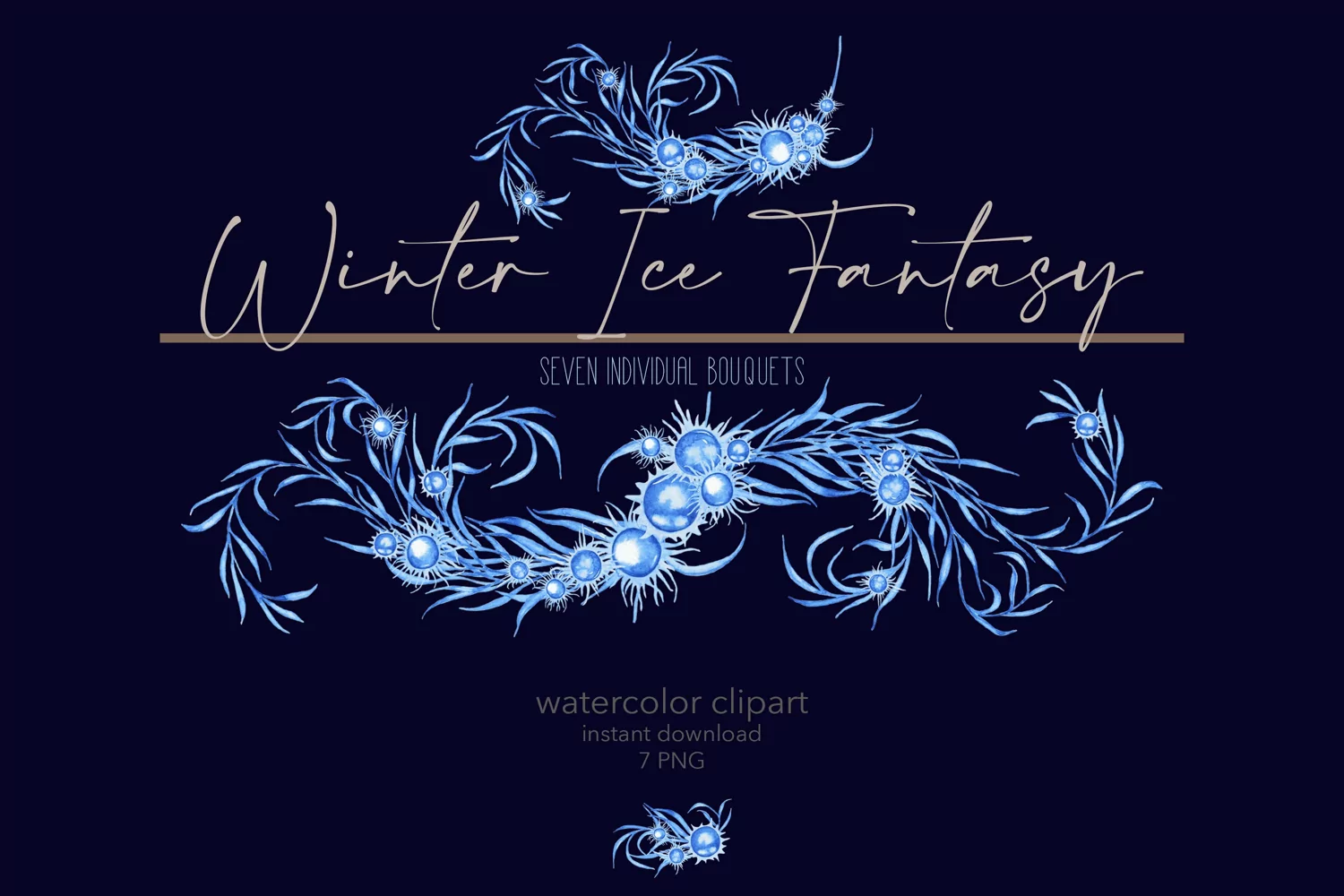 Seven Winter ice fantasy patterns. Christmas frost clip art.