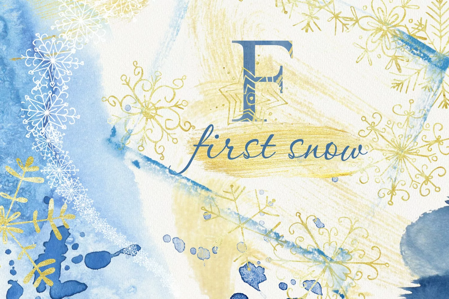 • 26   letters with watercolor texture and golden snowflakes (in PNG format)