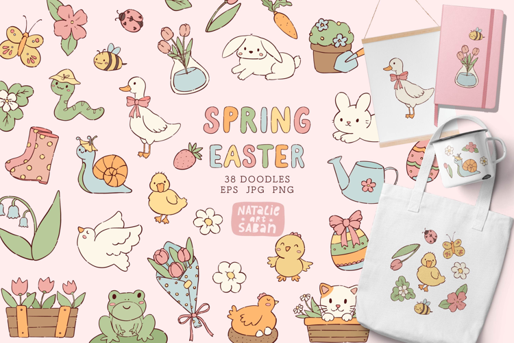 38 SPRING & EASTER doodles | EPS PNG JPG