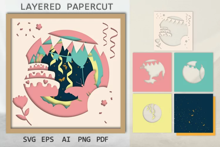 Birthday Layered card cricut, 3D paper cut SVG file!