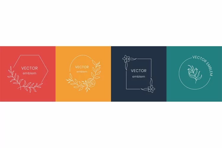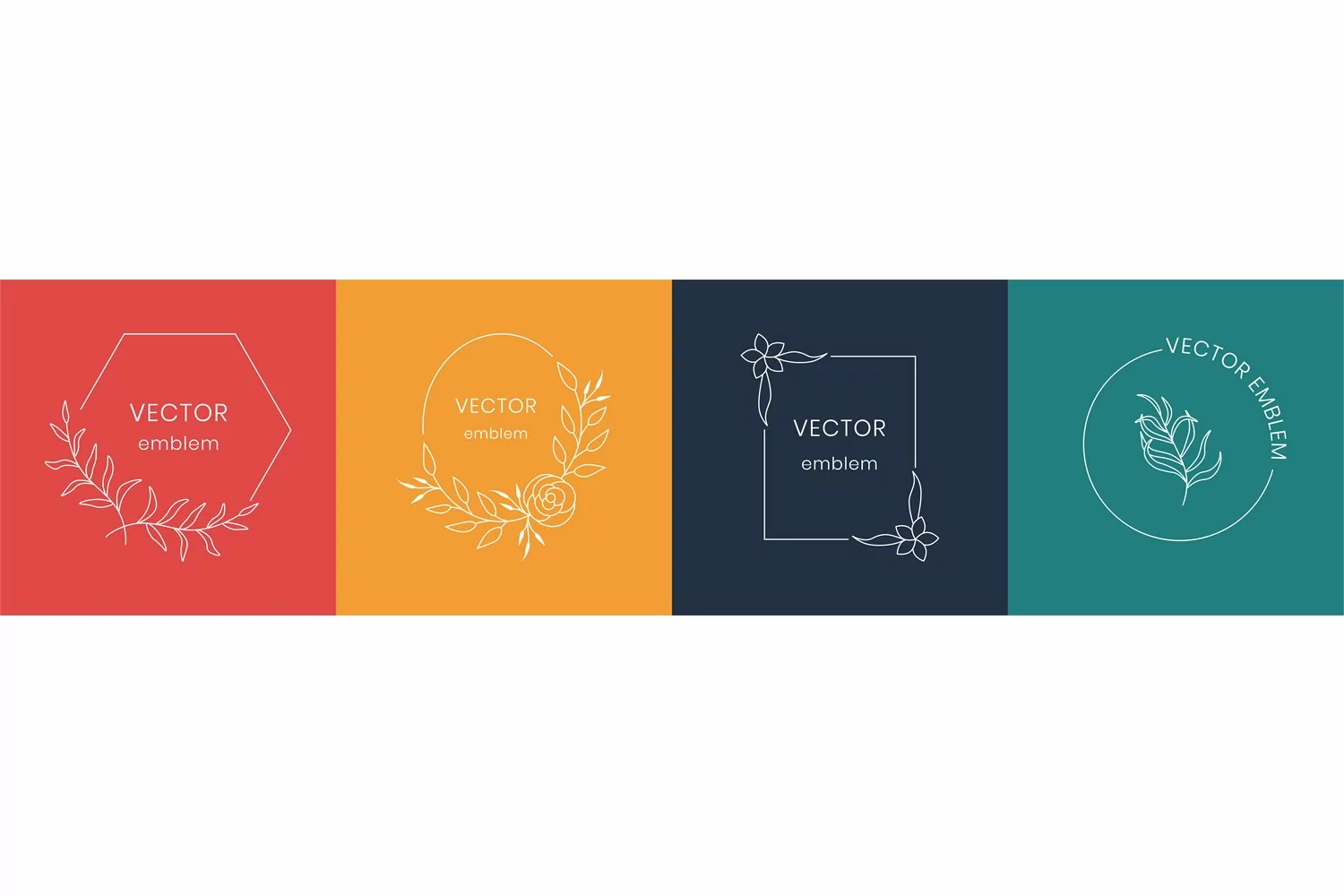 Abstract minimal logo. Hand drawn cosmetics botanic minimalism cosmetic concept. Vector trendy flower monogram emblem or symbol set