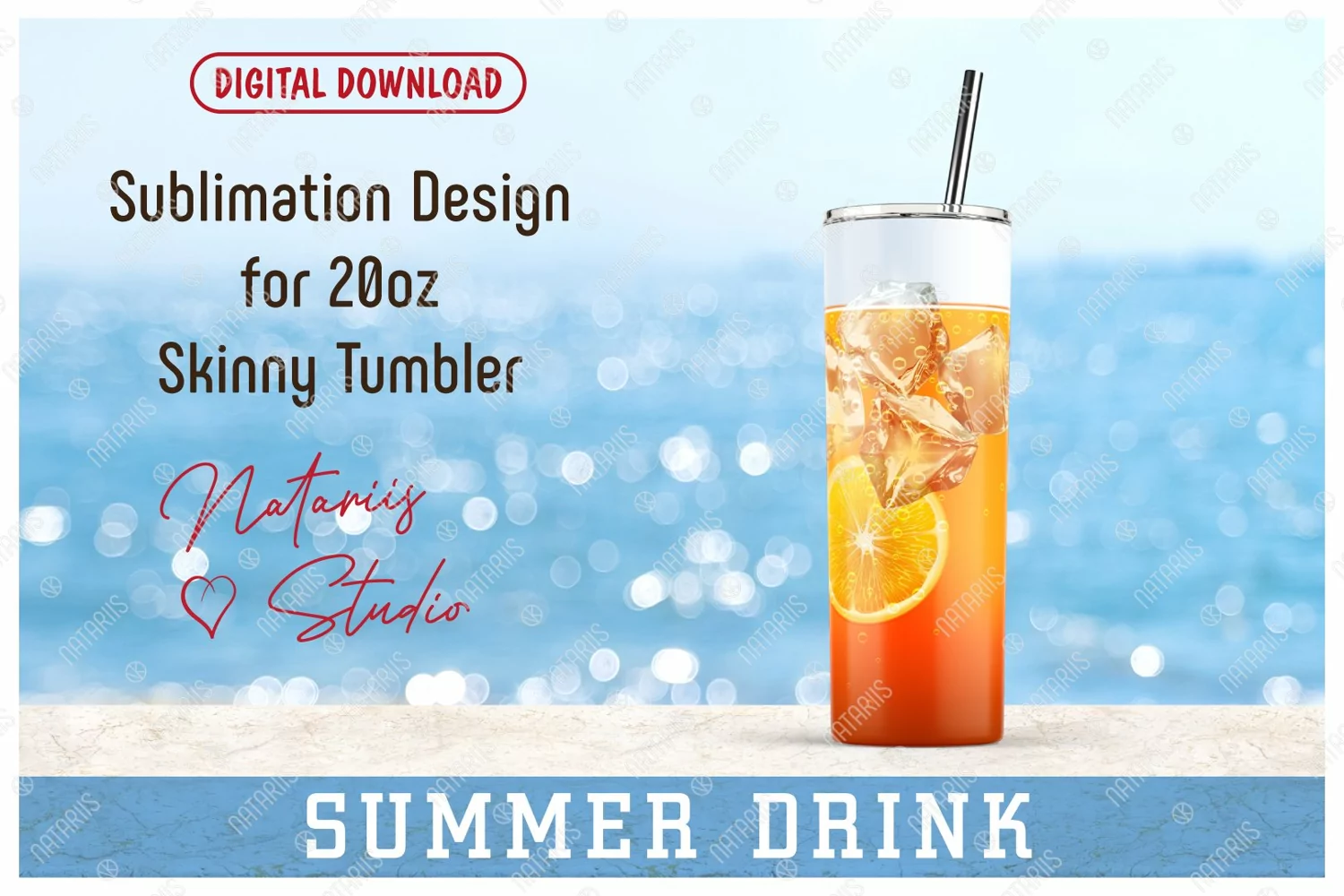Realistic Iced Orange Drink Pattern for 20oz SKINNY TUMBLER.