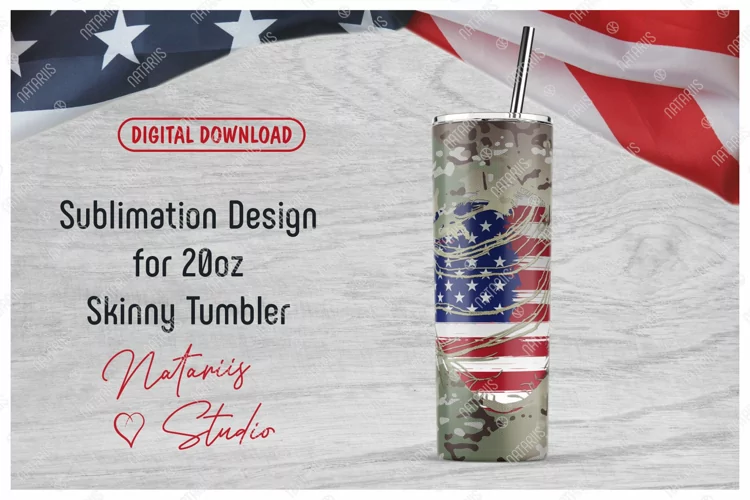 Military Tumbler Cup Mug Skinny Tumbler 20 Oz Skinny Tumbler Sublimation Decal Seamless Wrap Sublimation Waterslide Camouflage Camo 20oz Full Tumbler Wrap