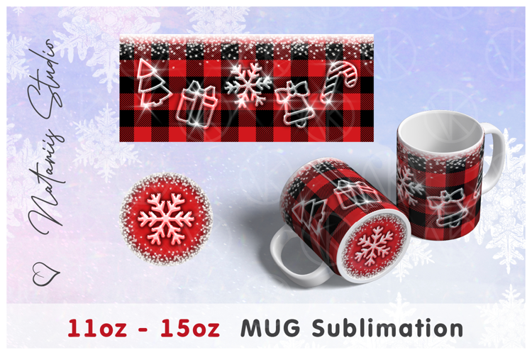 Christmas Buffalo Plaid pattern for 11oz-15oz Mugs. Digital design for sublimation.