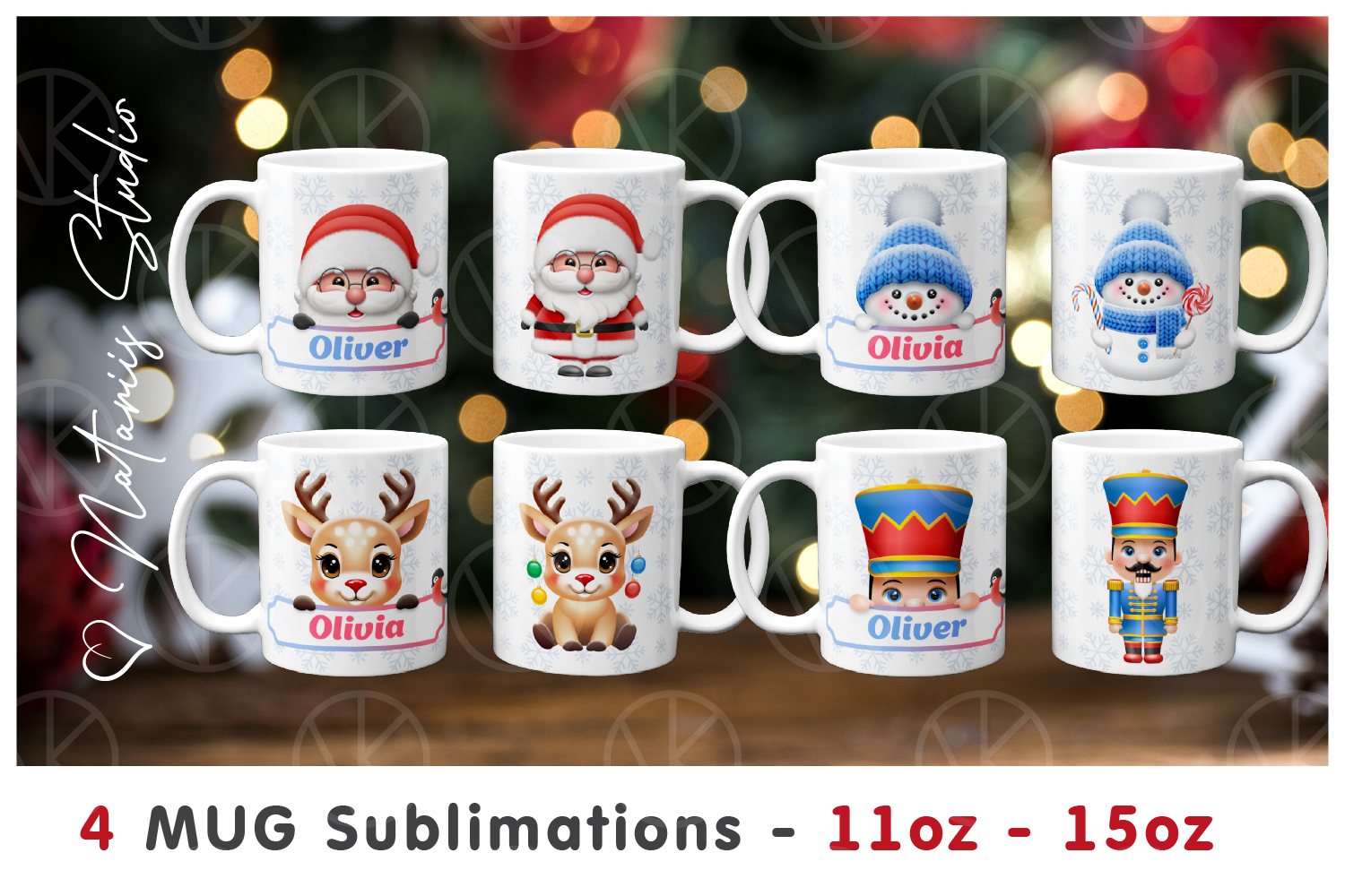 4 Funny Christmas 11oz-15oz Mug Designs. Custom Name Mugs. example image 1