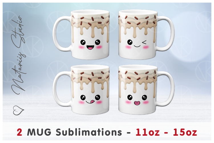 Coffee Mug Sublimation Funny Cute Design Kawaii Design Dripping Chocolate Tumbler Mug Cup 11oz 15oz Mug Wrap 11 Oz 15 Oz Kawaii Emojis Coffee Cocoa Mug