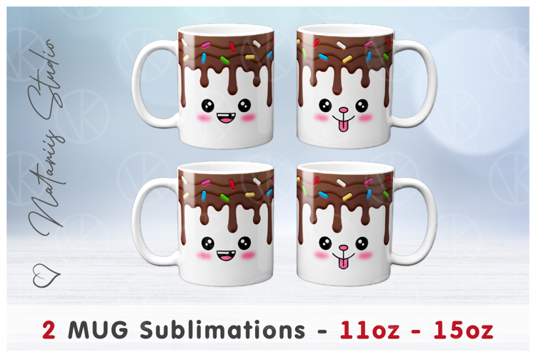 Coffee Mug Sublimation Funny Cute Design Kawaii Design Dripping Chocolate Tumbler Mug Cup 11oz 15oz Mug Wrap 11 Oz 15 Oz Kawaii Emojis Coffee Cocoa Mug