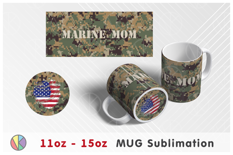 MARINE MOM - Military Camo Pattern - Patriotic Camouflage - 11oz-15oz Coffee Mug - DIY Sublimation - Mug and Bottom Sublimation Designs - PNG - Full wrap.