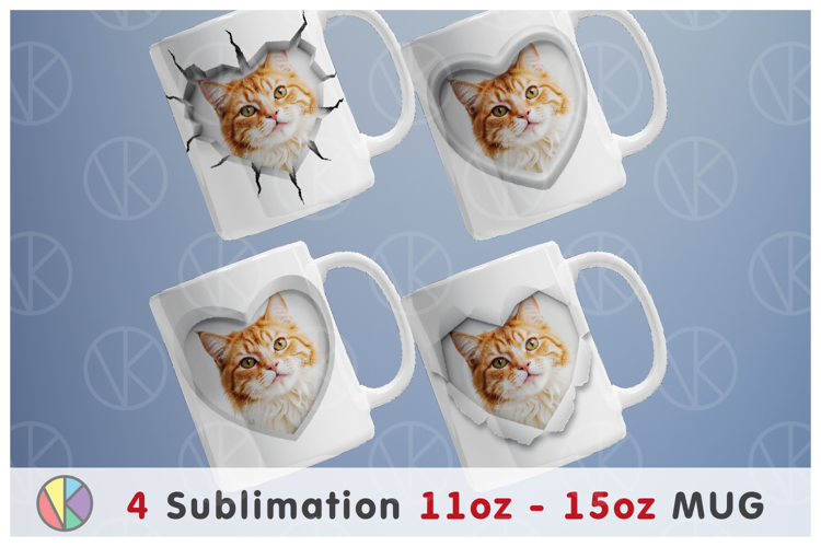 4 Custom Photo Frame Patterns - 3D Hole in the Shape of Heart - 11oz-15oz Coffee Mug - DIY Sublimation - PNG - Full wrap.