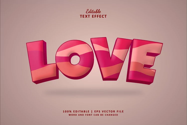 Love Editable Text Effect Style 3D. This is not a font. It’s a font effect for Adobe Illustrator Software.