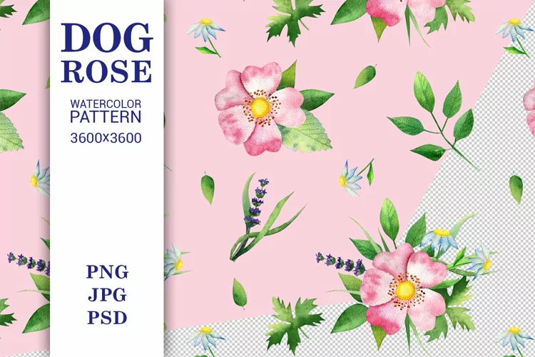 Hand painted watercolor floral pattern with dog-rose