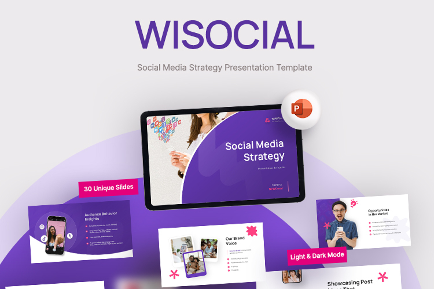Featuring infographics, device mockups, charts, and data visualizations, it’s perfect for presenting social media goals, campaign performance, KPIs, and audience insights.