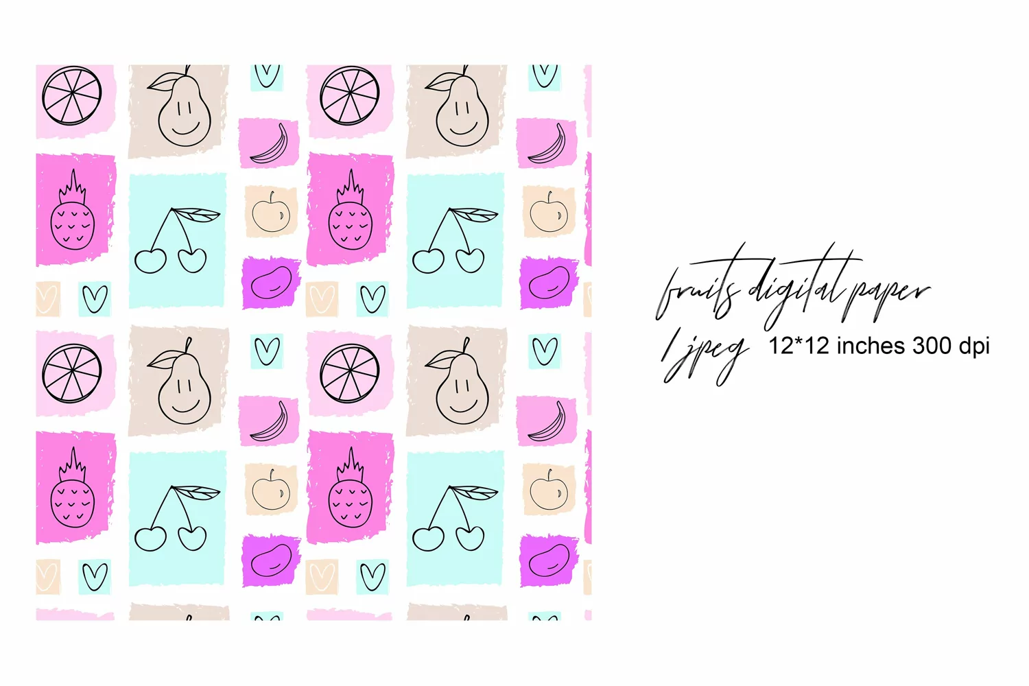 This is Fruits Digital Paper Pattern , perfect for greeting cards, party invitations, craft projects, logos, branding, scrapbooking, party supplies, stationery prints, birthday cards, journal cards,gift wrapping paper,home decor, wall art, card making, paper crafts and many other of your creative projects. All patterns are seamless.