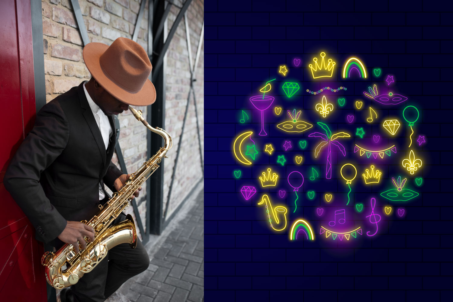Mardi Gras Mardi Gras Mask Neon Icons Carnival Decoration Neon Vector Carnival Icons Festival Neon Set New Orleans Style Vector Neon Design Neon Crown