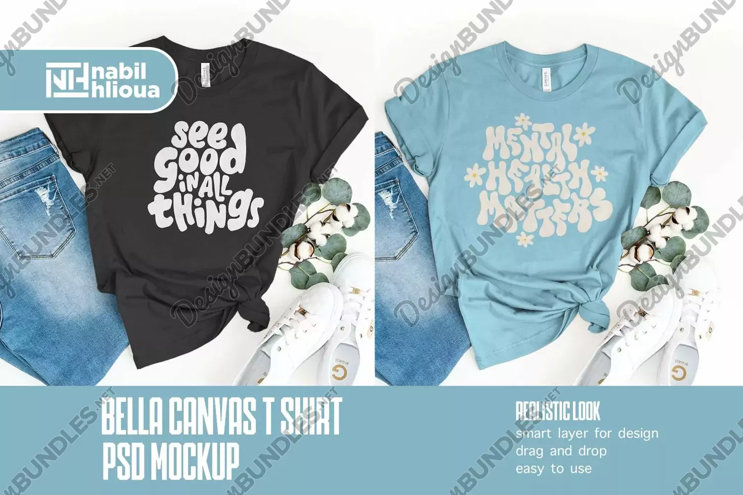 realistic bella canvas 3001 t shirt mockup PSD Template example image 1