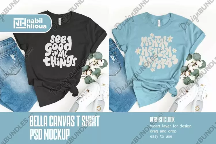 Elevate your t-shirt designs with this realistic bella canvas 3001 shirt PSD mockup template. Perfect for showcasing your unique tee designs, this mockup is easy to use in Photoshop and provides a high-quality, professional finish. Impress your clients and customers with this versatile and customizable mockup.