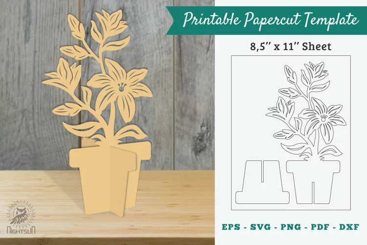 Paper Art Paper Craft Floral Papercut Plant Cut File Flowers Papercut Plant Home Decor 3d Papercut Plant Cricut File Plant Papercut Lily Flowers Printable Cut Template