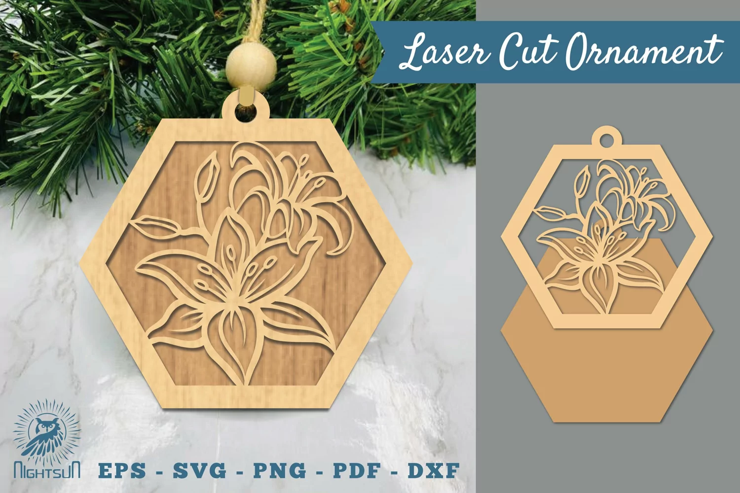 Ornament Design Laser Cutting Design Earring Design Hanging Ornament Wooden Ornament Hexagon Ornament Lasercut Ornament Hexagon Lasercut Wooden Lasercut Lily Flower Laser Cut Ornament