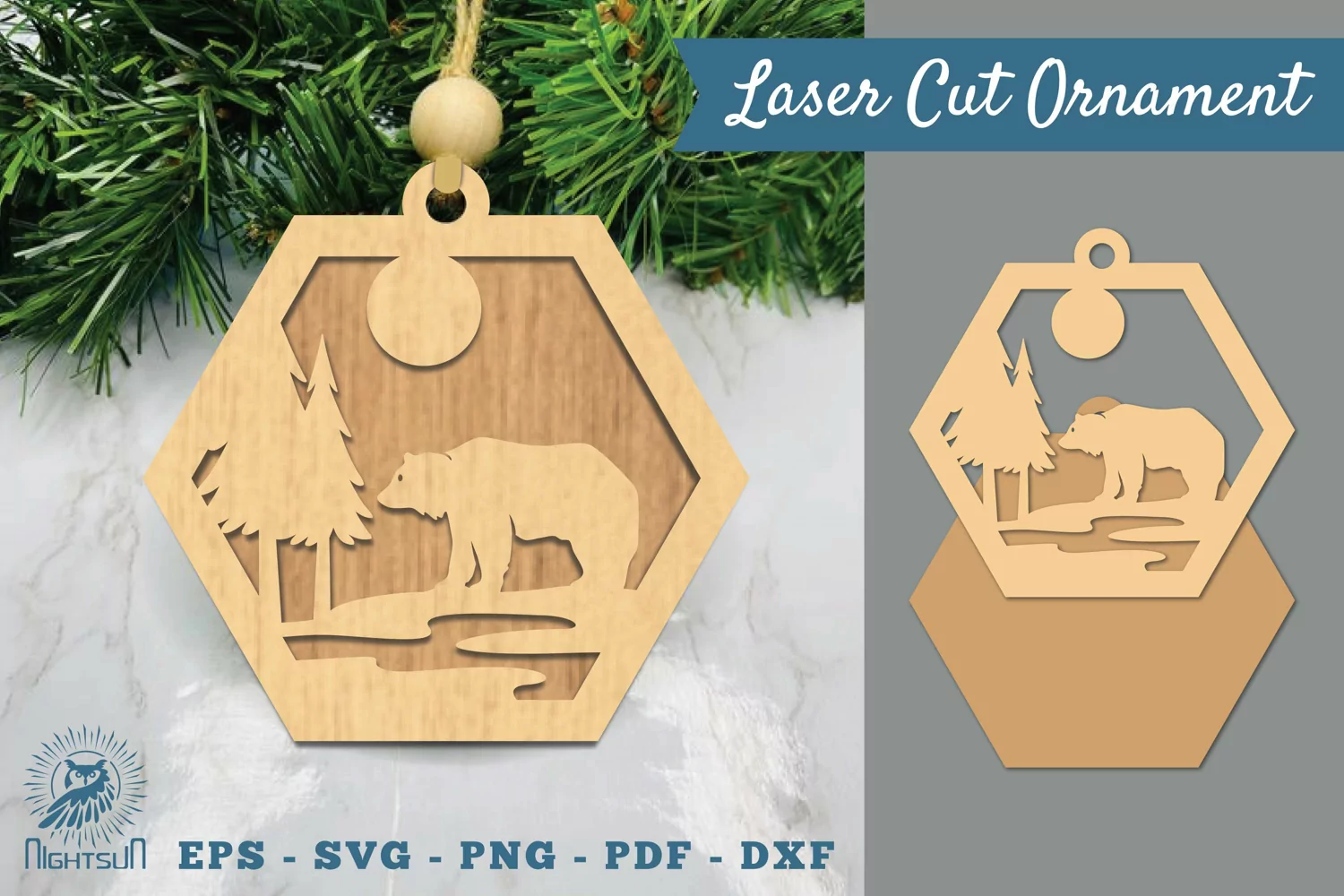 Forest Ornament Design Laser Cutting Design Wooden Ornament Animal Ornament Svg Ornament Lasercut Animal Lasercut Wooden Lasercut Bear In Forest Laser Cut Ornament Bear Lasercut