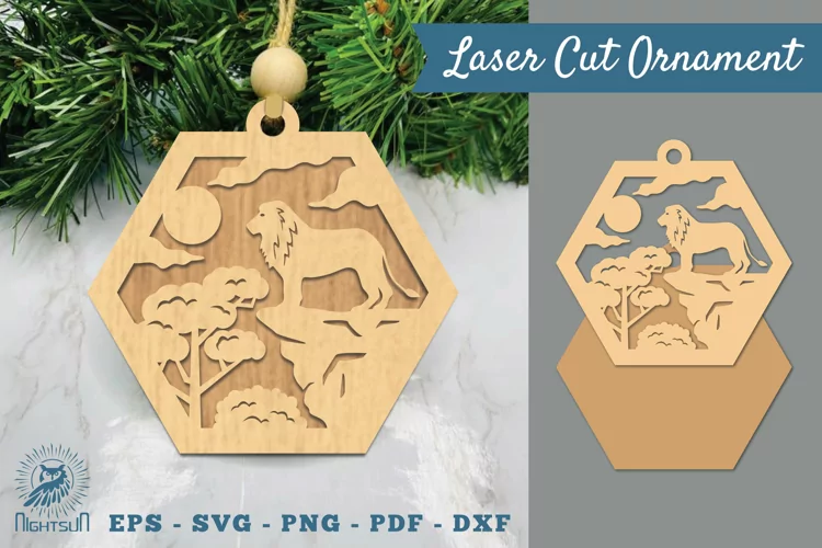 Forest Ornament Design Laser Cutting Design Wooden Ornament Animal Ornament Svg Ornament Lasercut Animal Lasercut Wooden Lasercut Lion In Forest Laser Cut Ornament Lion Lasercut