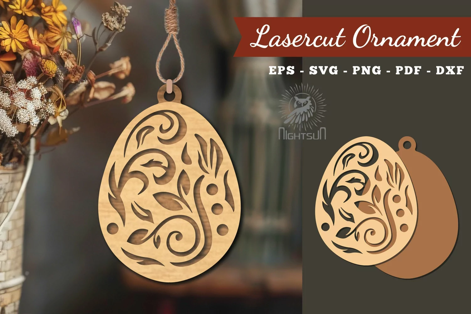 Ornament Sign Floral Flowers Bunny Easter Egg Home Decor Laser Files Lasercut Design Floral Egg Laser Cut Ornament