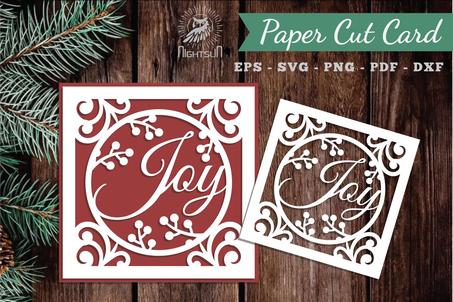 Joy Paper Cut Card SVG example image 1