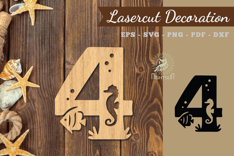 Underwater Number Four Lasercut Decoration SVG example image 1