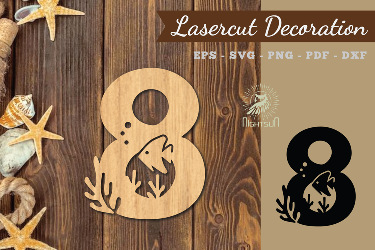 Underwater Number Eight Lasercut Decoration SVG example image 1