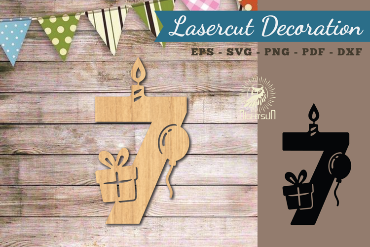 Birthday Number Seven Lasercut Decoration SVG example image 1