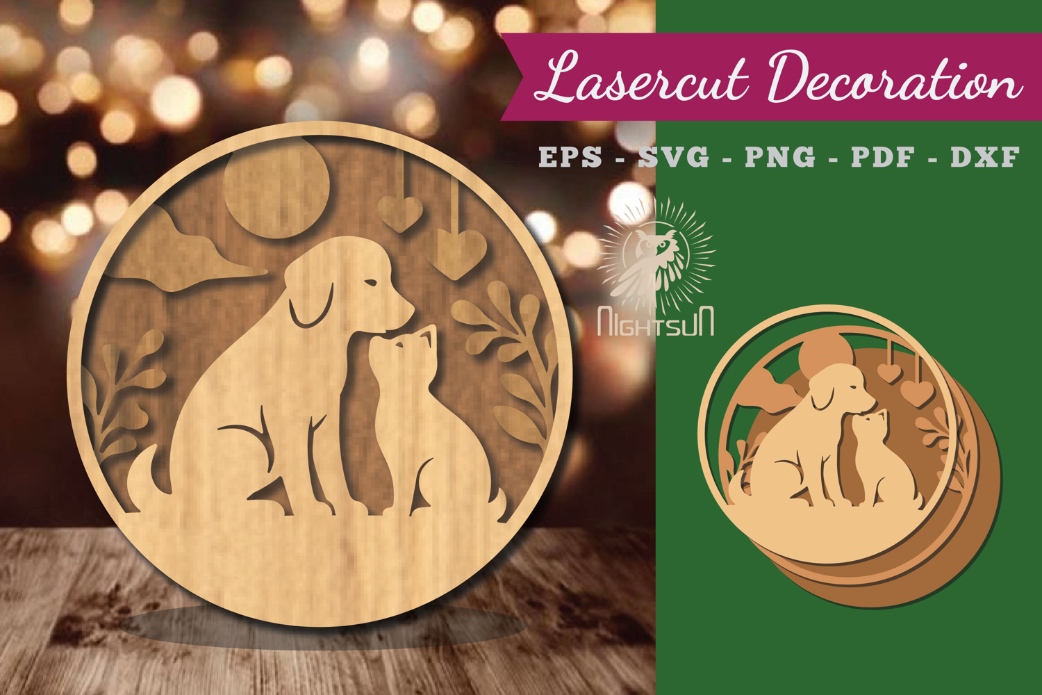Round Love Valentines Cat Cut File Dog Couple Paw Laser Files Cat And Dog Lasercut Round